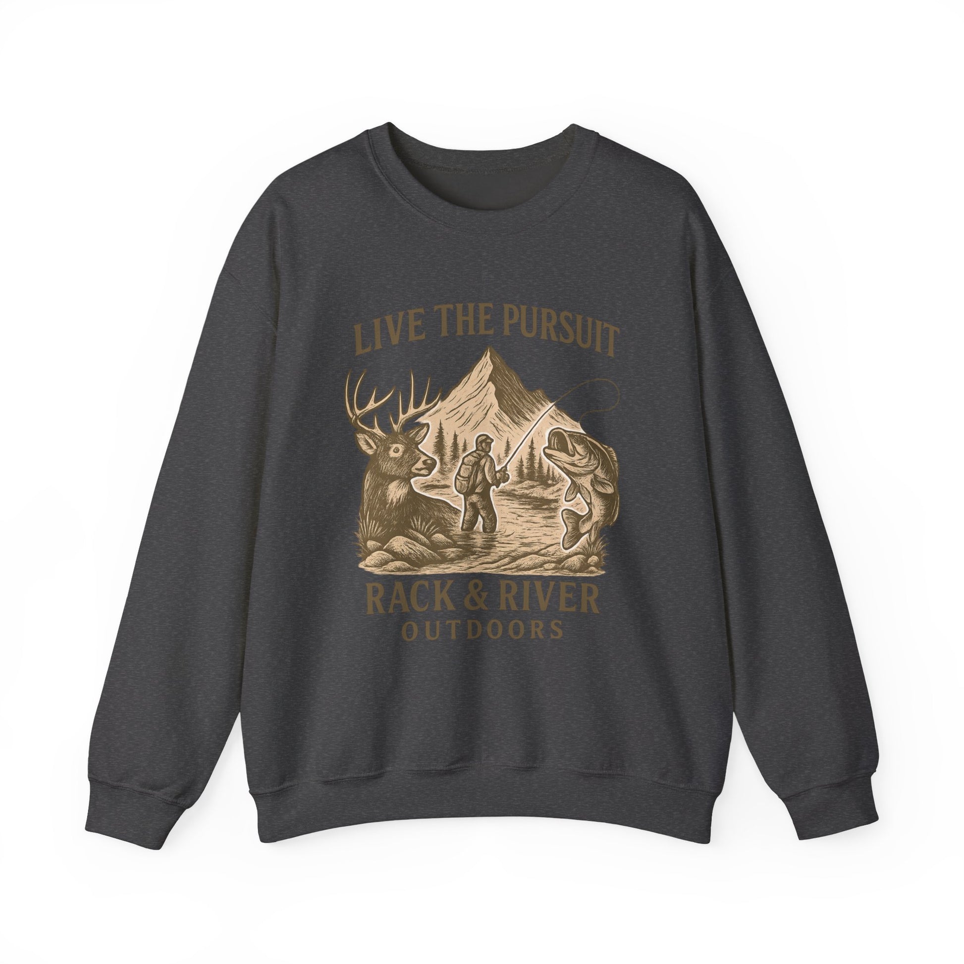 The Live The Pursuit Long Sleeve Crewneck delivers comfort, style, and purpose for the outdoorsman who never stops chasing what matters most. Featuring the Live The Pursuit design across the front and Rack & River Outdoors branding, it’s perfect for crisp mornings, long drives, or layering up in the field.